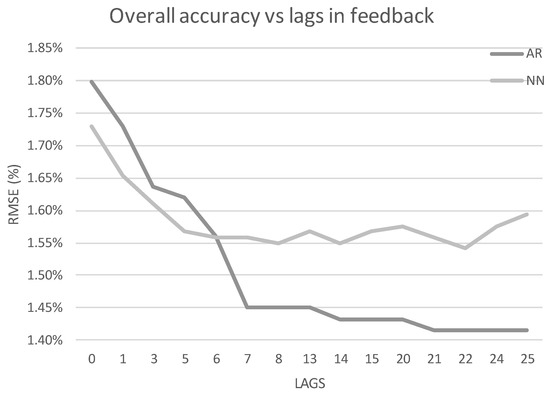 It is worth mentioning that the objective of this paper is not to provide or suggest analytical or statistical methods to determine the order of auto-regressive models like [44,45] but to offer a comparison between AR and NN based models to understand the effect that the auto-regressive order has on the forecasting accuracy.