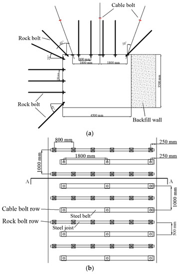 - Wang, H.; Zhang, D.; Fan, G. Structural effect of a soft–hard backfill wall in a gob-side roadway. Sci. Technol. 2011, 21, 313–318. [Google Scholar] [CrossRef]
