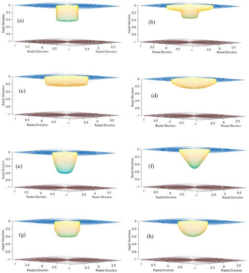 Various WEC shapes and near field computational mesh: (a) Cylindrical, (b) Nailhead-shaped, (c) Disk-shaped, (d) Elliptical, (e) Egg-shaped, (f) Conical, (g) Floater-shaped, (h) Semi-spherical.
