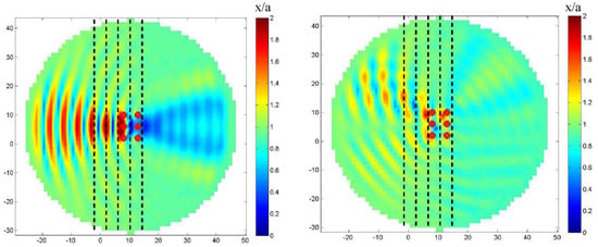 - Rey, V. A note on the scattering of obliquely incident surface gravity waves by cylindrical obstacles in waters of finite depth. Eur. J. Mech. B/Fluid 1995, 14, 207–216. [Google Scholar]