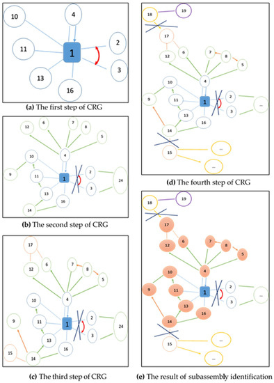 - The CRG is first proposed to model the mechanical product. The identification of the subassembly whose center is the target component through CRG and the pruning method can both reduce the search space of feasible disassembly sequences;