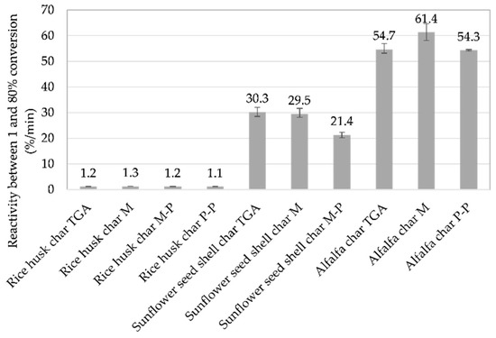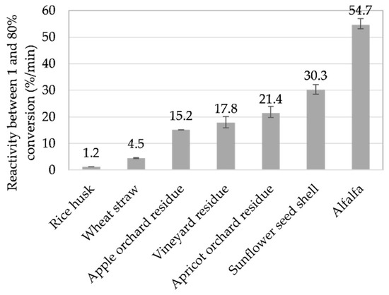 In addition, average reactivities of these biomass samples can be compared. Values of average reactivities between 1% and 80% conversion rates are gathered in Figure 8.