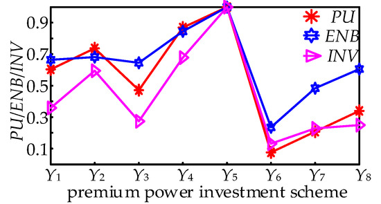 According to Figure 4, the relationship between customers’ demands for premium power, and the premium power level brought by the investment schemes is shown in Table 1.