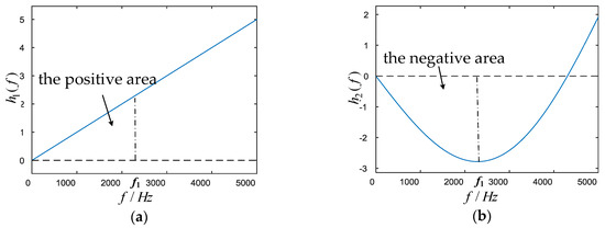 The curves of h1(f) and h2(f): (a) h1(f); (b) h2(f).