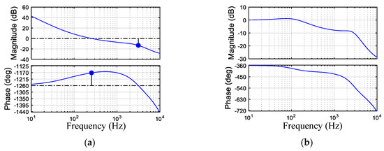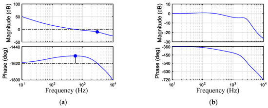Bode diagrams of the current loop with discrete control when τ = 1.59Ts: (a) Open-loop Bode diagrams; (b) Close-loop Bode diagrams.