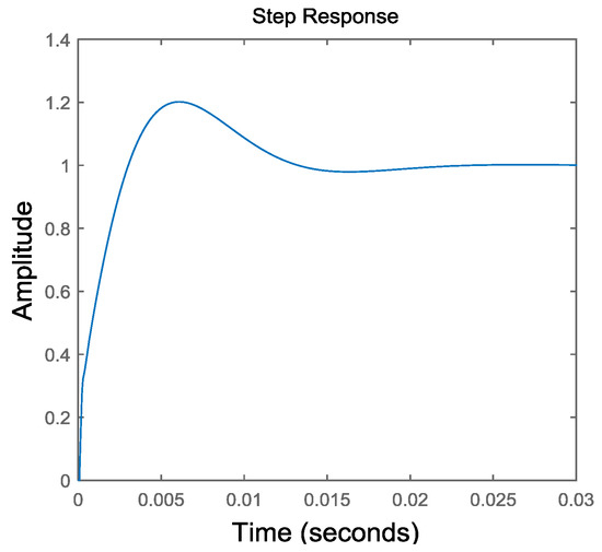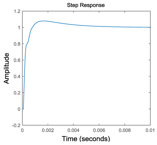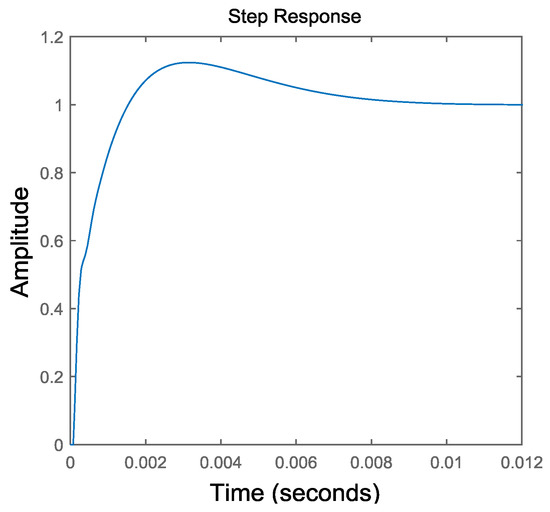 The step response of the system is depicted in Figure 19. The settling time is about 6 ms, and the overshoot is about 12%.