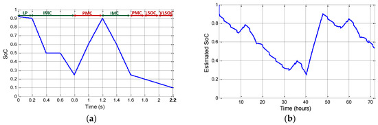 - The SOC is now estimated (Figure 6b) and the microgrid is simulated for 3 days (72 s of simulation).