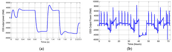 - From 2 to 2.2 s, the ESS continues its discharging (10% < SOC < 15%) and the P2 load is then disconnected. P1 is the load that is still connected to the system that is in a very low state of charge (VLSOC) operating mode.