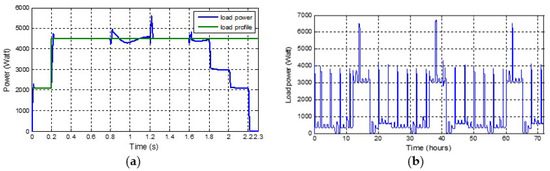 - The system has been simulated using the MATLAB-Simulink environment for a daily radiation profile of the Adrar region and the load profile of three Saharan cabins, as previously mentioned. The achieved simulation results are given by Figure 7b, Figure 8b, Figure 9b, Figure 10b and Figure 11b. Here, it can be noticed that: