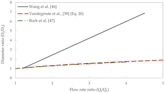 The relationship between diameter ratio and flow rate ratio [39,46,47].