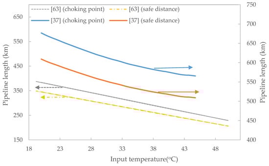 Variations of maximum safe CO2 pipeline length and choking point for different input temperatures [37,63].