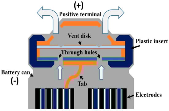 - Kaschmitter, J.L.; Martucci, F.L.; Mayer, S.T.; Souh, J.H.; Thompson, S. Cell Cap Assembly Having Frangible Tab Disconnect Mechanism. U.S. Patent 5,609,972, 11 March 1997. [Google Scholar]