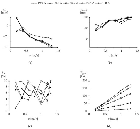 The dynamic behavior of the TLSRG was evaluated for different velocities and reference current values, in order to identify the optimal control parameters. To accomplish this task, the Box Complex optimization method was applied following the same procedure described in [38]. For each combination of velocity and current values, an optimization process was applied to the mathematical model of the TLSRG where the switching electric positions and the hysteresis band width were considered as optimization variables. In this process, the isolated DC/DC converter was omitted from the mathematical model and the generated electric power was directly delivered to a resistive load. For each evaluation, two simulations were always performed. The first was used to compute the electric load needed to consume the average electric generated power and the second to give the pretended data. A capacitance of 0.05 F was assumed for the capacitor in the converter and the initial bus voltage was defined as 6 kV. Each simulation time was set to 1 s.