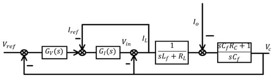 In Equation (9), is the system’s output voltage, is the reference voltage signal, and is the system’s output current. and represent the impedance of the capacitor and the inductor, respectively. and represent the controller of the voltage and the controller of the current, respectively.
