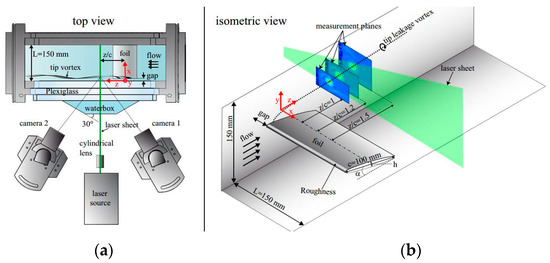 Rather than a single-point measurement using LDV, particle-imaging velocimetry (PIV) provides two-dimensional or even three-dimensional velocity fields. In recent decades, PIV has been increasingly used in pumps and turbines. Dreyer et al. [14,15] conducted stereo PIV measurements for the TLV, as illustrated in Figure 6. Taking advantage of high-speed flow visualization, the authors found remarkable impact of clearance size on the TLV trajectory; that is, the vortex becomes more distant from the hydrofoil with the decreasing tip-clearance size, and the changing tip clearance shifts the TLV trajectory after the trailing edge, as shown in Figure 7.