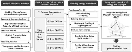 Oh M, Park J, Roh S, Lee C. Deducing the Optimal Control Method for Electrochromic Triple Glazing through an Integrated Evaluation of Building Energy and Daylight Performance. Energies. 2018; 11(9):2205. https://doi.org/10.3390/en11092205