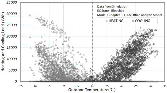 - Based on the results of the data analysis of the optical characteristics, the cooling and heating load, and lighting energy consumption hourly rate during a typical day in summer and winter of an office building were evaluated according to the five transmittance control conditions. This examination showed that the temperature controlling method and 50 W/m2 solar radiation controlling method have a high rate of maintaining the colored state during the summer and were advantageous in terms of the cooling load. For the heating load, the temperature controlling method and 700 W/m2 solar radiation controlling method, which have a high rate of decolored state during winter, showed a good performance result. From the perspective of lighting energy consumption, the 500 W/m2 and 700 W/m2 solar radiation controlling methods, which have high sunlight penetration rates, were found to have the edge over others during the summer; whereas the temperature controlling method that maintains the decolored state is more advantageous during the winter. The individual characteristic and tendency towards cooling, heating, and lighting energy can be identified through an analysis of the hourly data and used as basic data when developing the control conditions for electrochromic glass’ utilization.