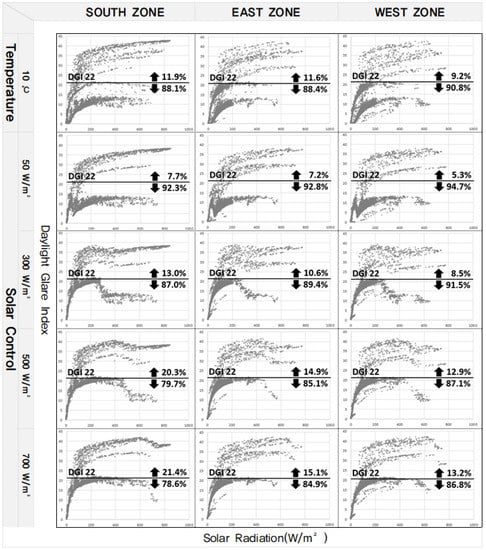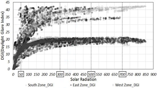 4.3. Analysis of DGI and Indoor Lighting by Controlling Conditions