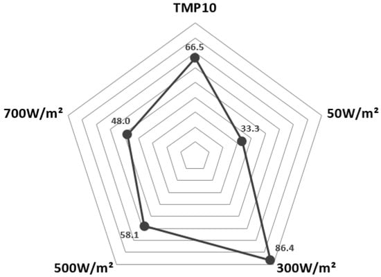 | Energy Consumption (kWh) | TMP 10 | 50 W/m2 | 300 W/m2 | 500 W/m2 | 700 W/m2 |