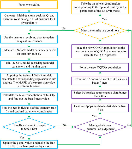 The steps of the proposed CQFOA for parameter optimization of an LS-SVR model are as follows as shown in Figure 1.