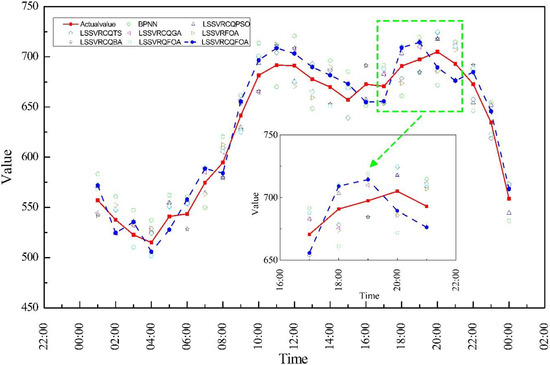Taking the IDAS 2014 dataset as an example, firstly, the forecasting results of these LS-SVR-based models are all closer to the actual load values than the BPNN model. This shows that LS-SVR-based models can simulate nonlinear systems of microgrid load more accurately than the BPNN model, due to its advantages in dealing with nonlinear problems.