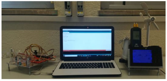 Thus, various researchers have tried to implement systems able to obtain specific, efficient and reliable climate condition data with minimum human effort. These devices must be amenable to be calibrated in order to adapt to the latitude and altitude, where they are placed. Only in this way can they report reliable data for investigation or industrial applications to be devised []. There are different commercial devices and industrial sensors that can be used for this aim: Controllino PLC Siemens © wireless humidity and temperature transmitters, anemometers controlled by Wi-Fi…etc. This is an open investigation field where any effort to improve the accuracy of existing devices can contribute to improving the energy efficiency of facilities and buildings []. Some authors have designed meteorological stations able to collect data in situ using different communication systems to transmit the obtained data, using ATmega 16 microcontrollers, and comparing their reliability through simultaneous measurements with other commercial systems such as the Campbell and Hobo H8 []. Furthermore, mobile monitoring systems are being used more frequently because of their fast data collection and the capability to forecast environmental conditions in a determined location, so some authors have focused their research on the development of this type of technology obtaining good results in terms of accuracy and reliability [].