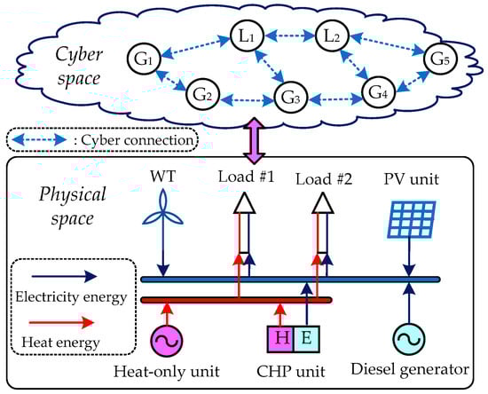 In this study, the distributed HEEM aims to minimize the total operating cost of the entire islanded microgrid while satisfying the heat and electricity energy balance constraints and other operating constraints, as illustrated in Figure 1. Note that each controllable unit only communicates with the adjacent units during the computation of distributed HEEM, which is the main difference compared with the centralized ED [].