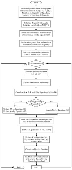 The flowchart of the DA-PSO algorithm for the MO-OPF problem is shown in Figure 1.