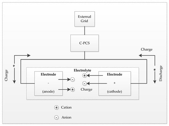 Battery ESSs (BESSs) are categorised as electrochemical devices that deliver electric energy by conversion of chemical reactions [32]. Power converters of BESSs are similar to those of wind turbines and photovoltaic (PV) systems; thus, they have an advantage in terms of flexibility [40]. BESSs can be classified as primary and secondary batteries. Primary batteries refer to non-rechargeable batteries, whereas secondary batteries refer to rechargeable batteries [23]. However, only rechargeable batteries are utilised for power grid applications. Batteries were rarely used in early years due to their low energy density and short lifetime [41]. However, current advancements in batteries have attracted investors to install BESSs due to the high energy density and simple means of installations.