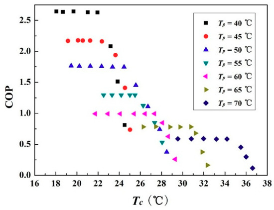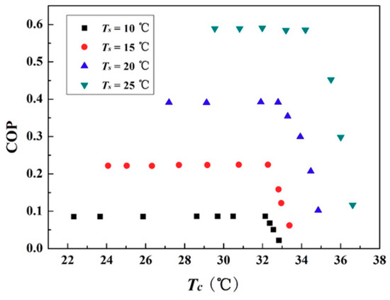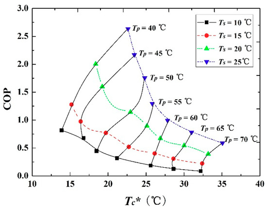 Ts = 25 °C. The minimum COP yielded 0.09 when