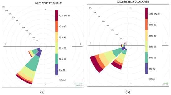 Wave roses of the two buoys: (a) Iquique; and (b) Valparaiso.