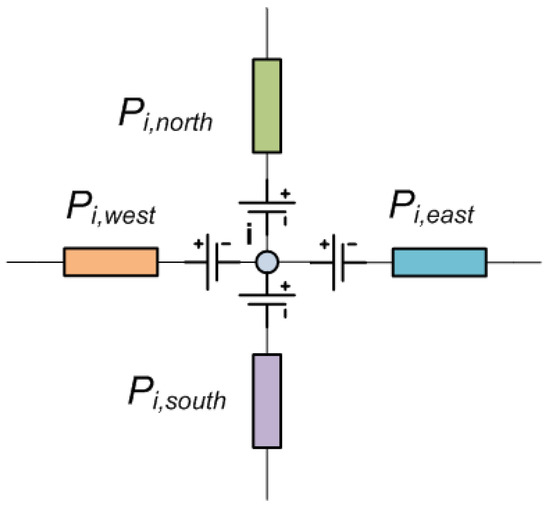In this section, the MCM developed for IPMSM is described. The MCM allows the number of nodes the machine is discretized into to be selected. The proposed MCM is divided into three regions: stator, rotor and airgap. A generic nodal element, shown in Figure 1, is proposed.