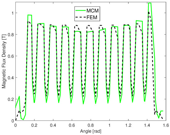 To show graphically the great accuracy obtained by the developed MCM, some important magnetic calculated characteristics are presented and compared with obtained by FEM simulation.