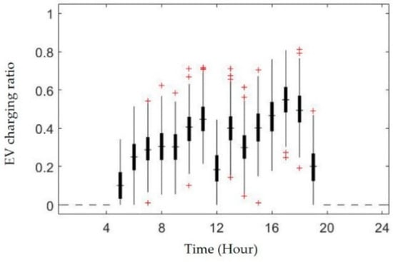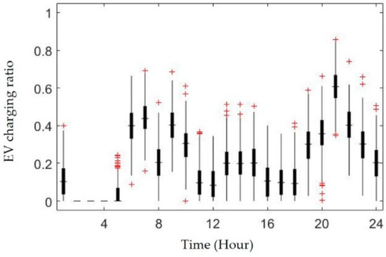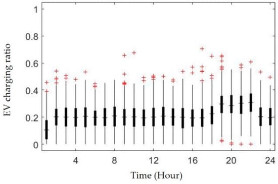 This case represents the EV charging pattern for a residential area. Figure 3 shows the information on this annual EV charging pattern. It is assumed that the EV charging demand of residential customers is relatively uniform throughout the day.