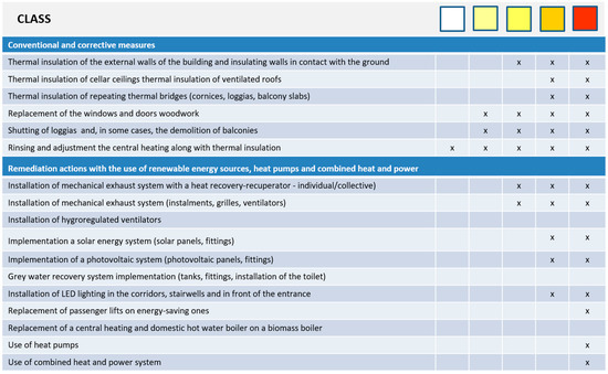 Communal and city municipal authorities are the main bodies responsible for monitoring the reduction in energy demand. Due to the need to agree on the process of reaching the values prescribed by the European Commission, it is necessary to monitor energy consumption at all levels of the administrative structure of the country. The improved energy balance of buildings, housing estates, and cities will help Poland maintain its obligations to the EU and Polish legislation. The key objective should be to increase the funding for thermal renovation of single-family buildings and houses in the communities of ownership. It should also be financing a high percentage of comprehensive thermal renovations to reduce final energy consumption, with no financing for low effect investments. Last but not least, Polish legislation should be broadening the thermal renovation support programs as shown in Figure 7). There is a need for public intervention (grants and tax exemptions) to encourage the rational use of energy in households, including supportive (financial) measures generate a lever-jack effect in the form of improvement of existing buildings [28].
