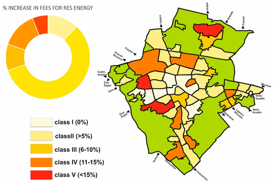 The city social-infrastructural correlation model enables diagnosing its aspects, which can support decision-making. This paper contributes to the current knowledge by demonstrating the possibilities of hierarchical investments, different for various buildings and neighborhoods, which allow rational public funding. Knowledge of the correlation conditions is important when implementing effective local policy. Despite residents in old multi-family buildings in the city center or its neighborhood being the most at risk of fuel poverty, modernization of the buildings is particularly difficult in the area. It requires comprehensive activities of numerous cooperating institutions: city authorities, social assistance, energy suppliers, and historic buildings conservators. In these places, modernization for RES is difficult. However, measures to prevent fuel poverty and to prepare protective programs for vulnerable users are necessary [36,37].