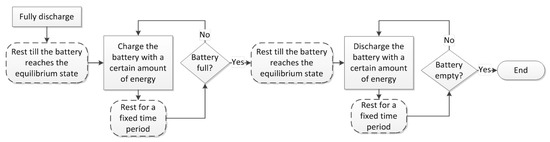One thing should be noted: after each charge/discharge step, the battery needed to rest until reaching its equilibrium state, for 1 h in this case.