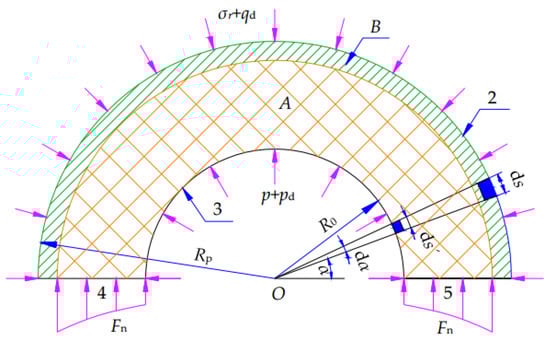 As active supports, surrounding rocks are reinforced actively by applying the bolt pre-tightening force. It can be considered that during the service life of such bolt supports, the strength q (Equation (8)) of the anchoring bearing structure is generally unchanged. The strength degradation and dilatancy of surrounding rocks in steady states after being subjected to impact disturbances are, in fact, brought about by the joint effects of the stress releasing from surrounding rocks under static loads and the accumulative effects of multiple dynamic disturbances. Therefore, the relevant bolt resistance is defined as the static cumulative resistance Qs. In addition, Qs constantly increases so as to adapt to the dilatancy-induced deformation and decreasing cohesion caused by the stress release of surrounding rocks under conditions of static loads and the dynamic disturbance.