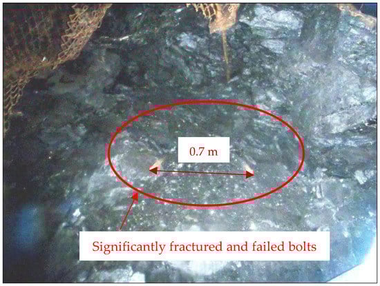 Figure 10 displays one of the in situ failure modes for rockbursts (occurring at 19:34 p.m. on 18 April 2014). The rockburst (affected range of 17 m) was triggered by a microseismic event of 4.85 × 10