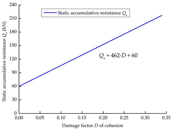 Figure 12. The static cumulative resistance linearly increases with the degradation of surrounding rock strength, which satisfies