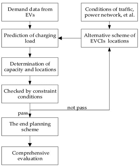 This paper focuses on the planning of EVCIs for urban areas with limited land supply. Therefore, the analysis is based on the known alternative locations of EVCIs, and finally, a feasible planning scheme is formulated. Figure 1 gives the flow chart of the planning of EVCIs. The main steps are explained as follows:
