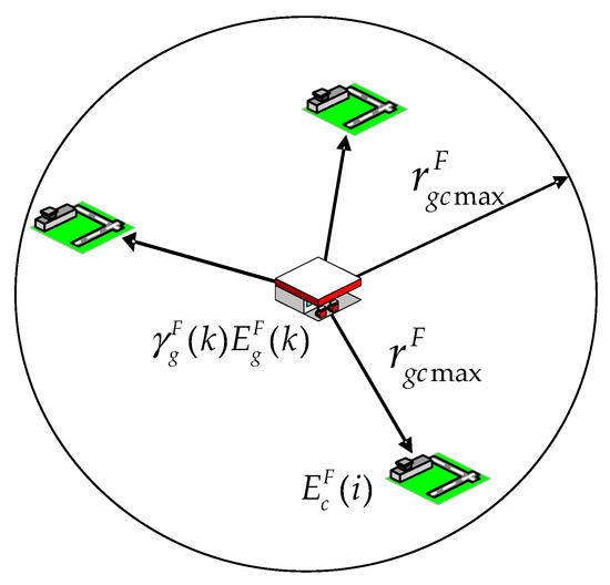 where is the average distance of the charging electric energy, is the average distance to charge EV in the i-th CCI, and is the average distance to charge EV in the j-th DCI. If is assumed to be zero, then Equation (18) can be reduced to the following equation.