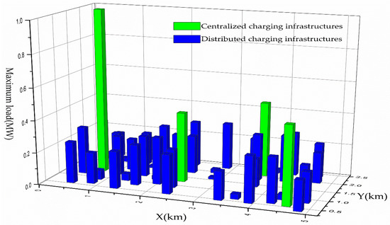 - Because DCIs in the commercial area are limited in scale and have no REEQ, the maximum loads are low. In addition, the maximum load distribution of DCIs is uniform and not high, which is beneficial to reduce the impact of EV charging on the regional power grid.