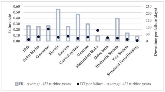 Table 6 shows the results of downtime and cost criticality values for every subsystem of wind turbines considering their climatic regions. Cost criticality of a subsystem is calculated using Equations (1)–(4). Downtime criticality is calculated by multiplying downtime per failure and annual failure rate per subsystem as in Equation (5).