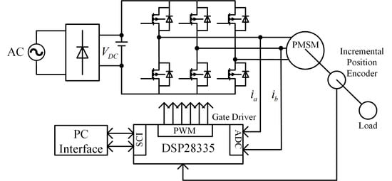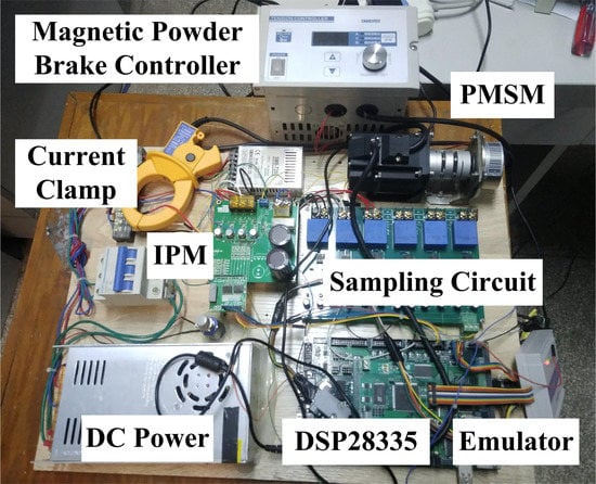 Permanent magnet synchronous motors (PMSMs) have many advantages, such as high power density, simple structure, small volume, high efficiency and reliability. PMSMs are widely used in numerical control machine tools, aerospace and industrial robotic manipulators [1]. A PMSM is a typical nonlinear and strongly coupled system, with unpredictable external disturbances, as well as internal parameter variations [2]. In recent years, various nonlinear control methods [3,4,5,6,7,8,9,10,11], such as fuzzy logic control, sliding mode control, neural network control, nonlinear optimal control, internal model control, adaptive control, have been used to meet the requirements of high reliability and performance in PMSM control [7,8,9,10]. The fuzzy logic control is successfully applied in the speed control of PMSMs [12,13]. However, the fuzzy control membership function is mainly based on expert experience, which is difficult to obtain. Sliding mode control is a preferred research topic, due to its insensitivity to variation of control object parameters and load disturbances [14,15]. Nevertheless, chattering phenomena exist in this control method. Meanwhile, nonlinear optimal control has been put forward as a new PMSM control method [16]. However, the parameters of the PMSM must be sufficiently accurate, and control results cannot adapt in time when the mechanical parameters of PMSM change. In [17], a novel control scheme combining the inverse system method and the internal model control for a bearingless permanent magnet synchronous motor (BPMSM) was proposed by Sun et al., although in order to regulate the tracking and disturbance rejection properties, the values of control parameter sets need to be adjusted separately [18].