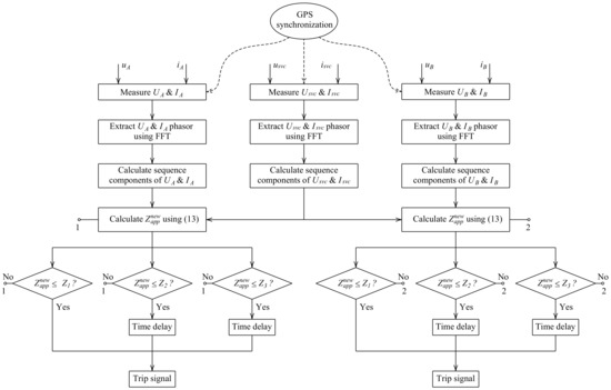 Distance protection relays are widely used as the main protection scheme for transmission lines in power systems. A digital distance relay operates based on the measured impedance calculated from sampled voltage and current data at the relay locations at substations. The setting of distance relays’ operating zones is obtained from the line impedance protected by the relay. During a short-circuit fault, the apparent impedance trajectory falls inside the operating zones and as a consequence of the trip signal will be sent to the associated circuit breaker to disconnect the faulty line in order to maintain the normal operating mode of the power system [1,2]. Recently, the flexible alternating current transmission systems (FACTS) controllers in power systems have been used to improve power transfer capability and enhance controllability and stability of the power system [3,4]. However, the FACTS devices may also cause the transmission line to lead to deterioration of distance relay operation resulting in inaccurate estimation of short-circuit fault location in transmission lines such as over-reach and under-reach for different cases [5,6,7]. The improper working of distance relay can lead to incorrect tripping and it not only decreases the reliability and security of the power system but also can institute the cascade tripping and blackouts in the system [8].