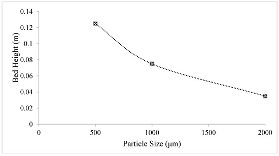 Bed height for particle sizes of 200, 500, 1000, and 2000 μm.