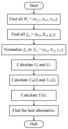 - Find the best alternative which has the largest inverse function-based total utility value. The flow chart of the above algorithm is depicted in Figure 5:
