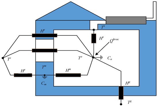 16]. The EWH is an inherent component for domestic hot-water (DHW) consumption. The temperature of hot water can be slightly altered to offer DR during hours with low PV output. For modeling the HVAC load, a two-capacity building model, which is a very efficient model for estimating the space heating or cooling demand and indoor air temperature changes with regard to outdoor temperature, was used [