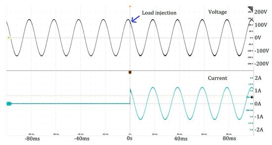 Figure 9 shows the responses of the same inverter when the reference voltage given by a DC voltage of 100 V. In both cases of the AC and DC reference voltages, the inverter yields output voltages, which are stable and match with the given reference voltages almost exactly, without transient delay. The output voltages are maintained robustly without any harmonic during the load injection.